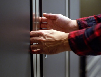 Create a customizable steel cabinet system to store belongings behind closed doors.